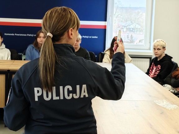 Komendę Powiatową Policji w Łasku odwiedzili uczniowie klasy pierwszej oddziału o profilu mundurowym z Zespołu Szkół Mundurowo-Technicznych im. Armii Krajowej w Ostrowie. Młodzież uczestniczyła w cyklu zajęć prowadzonych przez policjantów różnych pionów, podczas których poznała specyfikę służby, podstawowe uprawnienia funkcjonariuszy, sprzęt wykorzystywany w pracy oraz obejrzała pokaz psa służbowego.