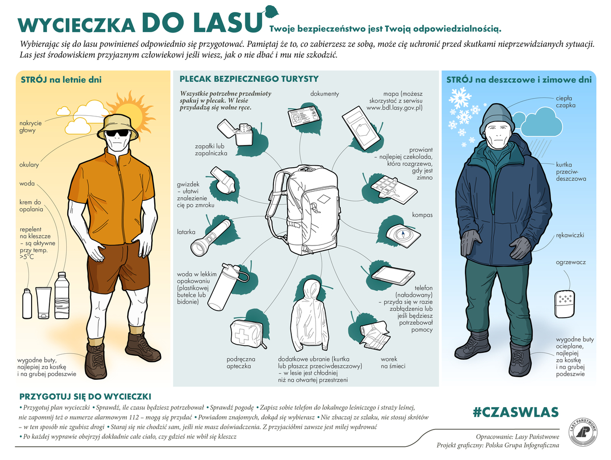 Dlatego wybierając się do lasu należy pamiętać o podstawowych zasadach ważnych dla naszego bezpieczeństwa: