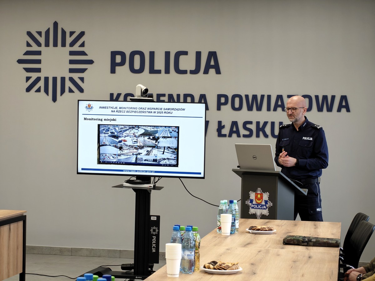 Po omówieniu prezentacji głos zabrała inspektor Anita Tim-Warchał Zastępca Komendanta Wojewódzkiego Policji w Łodzi, która podkreśliła wysoki poziom zaangażowania policjantów Komendy Powiatowej Policji w Łasku w realizację zadań na rzecz bezpieczeństwa i porządku publicznego. Zwróciła również uwagę na istotne znaczenie inwestycji realizowanych przez łaską Policję, w tym modernizację nowej auli, a także na wsparcie udzielane w tym zakresie przez samorządy.