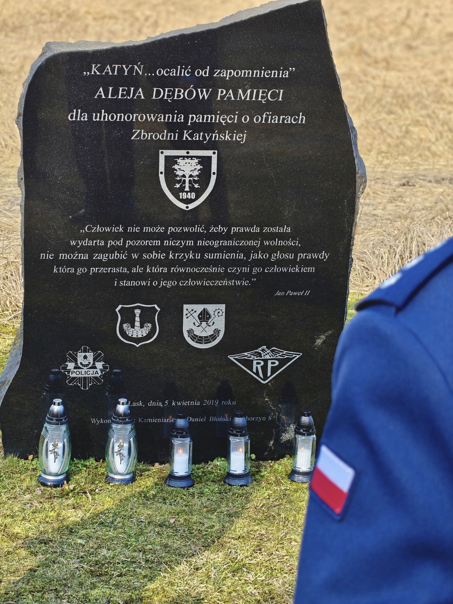 Komendant Powiatowy Policji w Łasku mł. insp. Grzegorz Sas wraz z prezesem Stowarzyszenia Rodzina Policyjna 1939 w Łodzi Jarosławem Olbrychowskim, Naczelnikiem Wydziału Prewencji Komendy Powiatowej Policji w Łasku nadkom. Krzysztofem Ochockim oraz Juliuszem Baczmagą oddali hołd funkcjonariuszom Policji Państwowej ofiarom Zbrodni Katyńskiej, składając znicze pamięci w Alei Dębów przy ulicy Kilińskiego w Łasku.