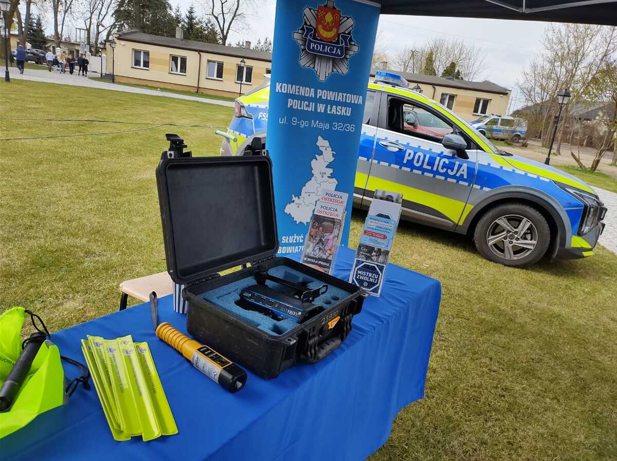 Podczas wydarzenia łascy policjanci wystawili również stoisko promocyjne. Funkcjonariusze rozmawiali z młodzieżą o codziennej służbie, zasadach naboru oraz możliwościach rozwoju zawodowego w Policji. Była to doskonała okazja do promocji zawodu policjanta oraz zachęcenia młodych ludzi do związania swojej przyszłości z formacją.