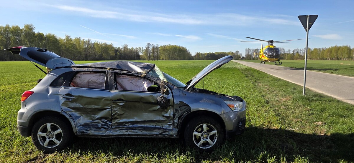 W środę, 22 kwietnia 2026 roku około godziny 7:50 policjanci pracowali na miejscu zdarzenia drogowego w miejscowości Wola Buczkowska. Jak wynika ze wstępnych ustaleń mundurowych, 59–letni kierujący pojazdem marki Mitsubishi, mieszkaniec Łodzi, jadąc drogą podporządkowaną, nie ustąpił pierwszeństwa przejazdu 49–letniej kierującej pojazdem marki Ford, mieszkance powiatu łaskiego, poruszającej się drogą z pierwszeństwem. W następstwie zderzenia pojazd marki Mitsubishi dachował i zatrzymał się poza jezdnią na terenie pola uprawnego. Oboje kierujący zostali przewiezieni do szpitali. Mężczyzna został przetransportowany Lotniczym Pogotowiem Ratunkowym. Uczestnicy zdarzenia byli trzeźwi.