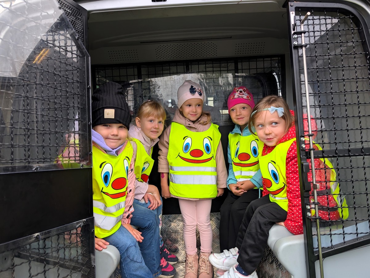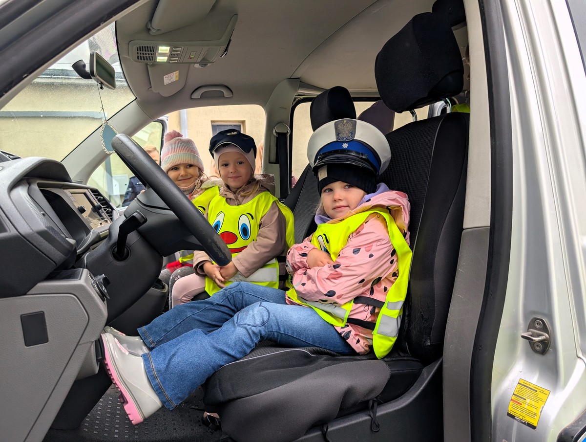 Na zakończenie spotkania najmłodsi mieli okazję obejrzeć policyjny radiowóz, wsiąść do środka oraz włączyć sygnały świetlne. Wizyta sprawiła im wiele radości i z pewnością na długo pozostanie w pamięci przedszkolaków.