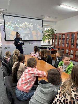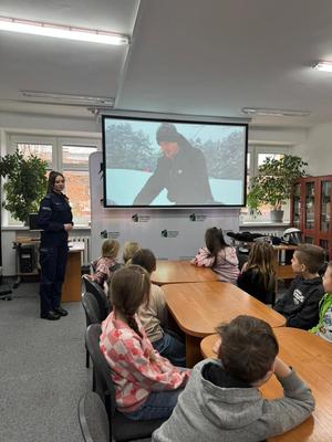 Podczas spotkania mundurowa omówiła zasady bezpiecznych zachowań w trakcie spędzania wolnego czasu podczas zimowego wypoczynku. Dzieci dowiedziały się, jak prawidłowo poruszać się po drogach, na co zwracać uwagę jako piesi oraz jak bezpiecznie bawić się zimą, zarówno na świeżym powietrzu, jak i w czasie zabaw w domu. Policjantka zachęcała również do noszenia elementów odblaskowych, podkreślając ich znaczenie dla poprawy widoczności i bezpieczeństwa, zwłaszcza po zmroku.