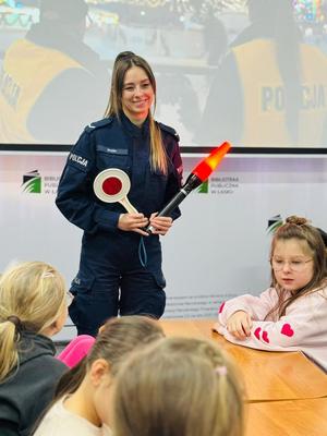 W poniedziałek, 9 lutego, w pierwszy dzień drugiego tygodnia ferii zimowych, w ramach policyjnej kampanii profilaktyczno-edukacyjnej „Kręci mnie bezpieczeństwo w zimie”, policjantka zajmująca się profilaktyką społeczną spotkała się z dziećmi w Bibliotece Publicznej w Łasku.